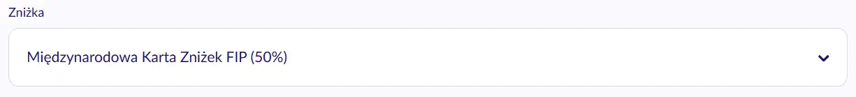 Then under My Account / Moje konto at Discount / Zniżka, add the discount Międzynarodowa Karta Zniżek FIP (50%).